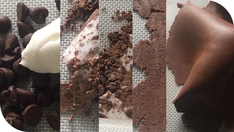 Mixing may be accomplished by rolling between two non-stick surfaces such as silicone parchment paper or sil-pat type rolling mats.